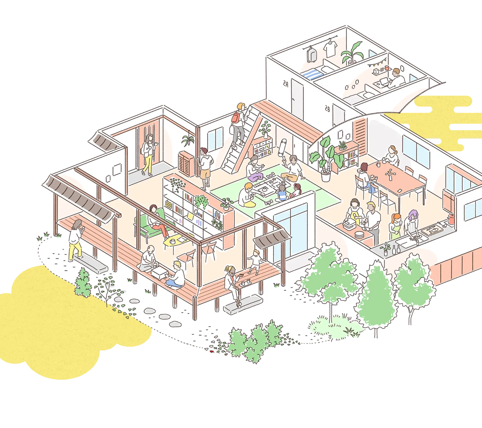 Borderless House Kyoto-Uji 1 is thoughtfully designed for international residents to enjoy a comfortable and relaxing communal lifestyle. Experience traditional Japanese living with our large living room and tea room, offering a cozy space for everyone.