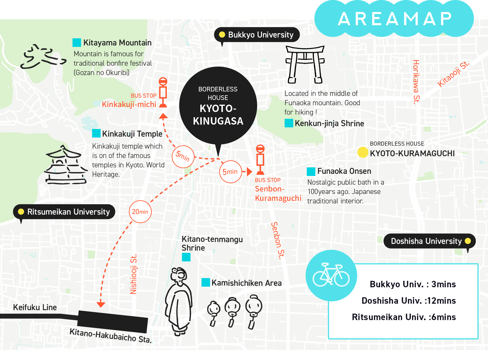 Kyoto-Kinugasa share house is ideally located for students and language learners: