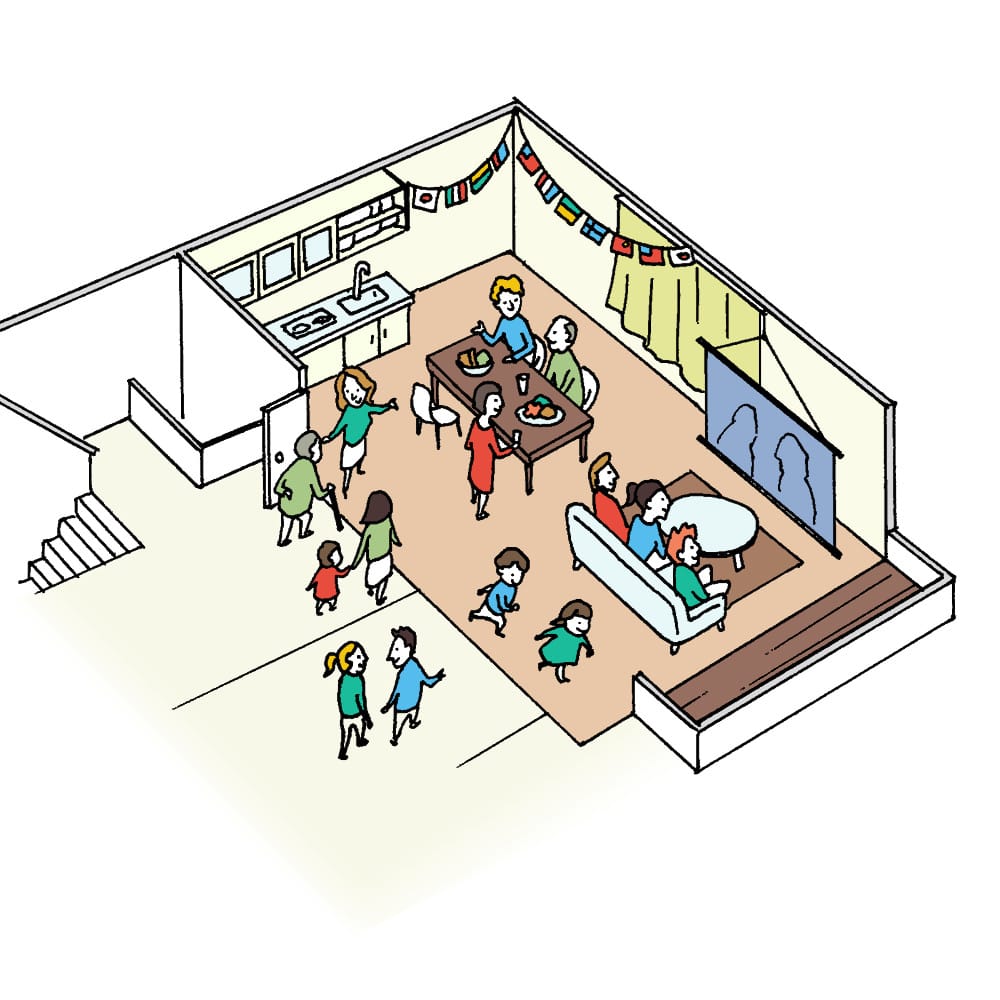 The community space, the area of 42.9m2, has equipments such as projecter and ping-pong table, which will add a spice to the fun, cozy atmosphere for all of the tenants to enjoy their share house life. An occasional parties and events with the other tenants of the building will also be held.